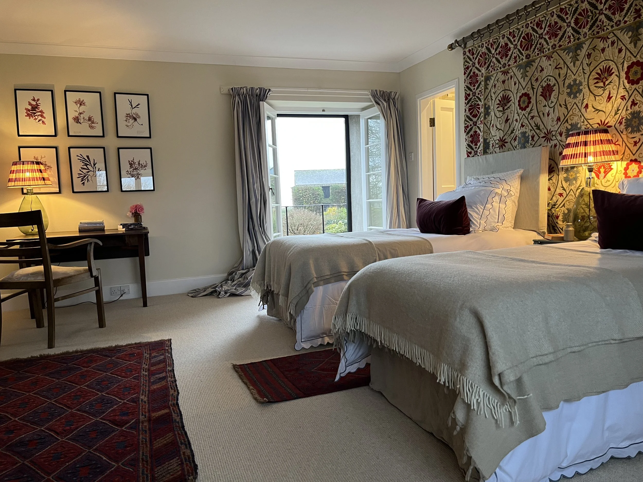 Beautifully furnished, luxuriously spacious rooms with private bathrooms, can be double, triple or twin. Gorgeous views over the river Lynher and Dartmoor and window seats to sit and enjoy them.