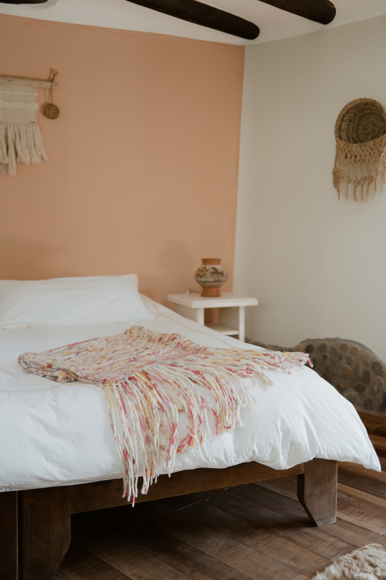 El Verde is intentionally intimate, with just four beautifully appointed rooms accommodating up to nine guests. This small scale allows for spaciousness, serenity, and peace, while also nurturing a sense of connection and shared presence. Each room offers stunning views, high-quality linens, comfortable beds, thoughtful décor, and a private bathroom with solar-heated hot water (with electric backup for clouded Valley days).