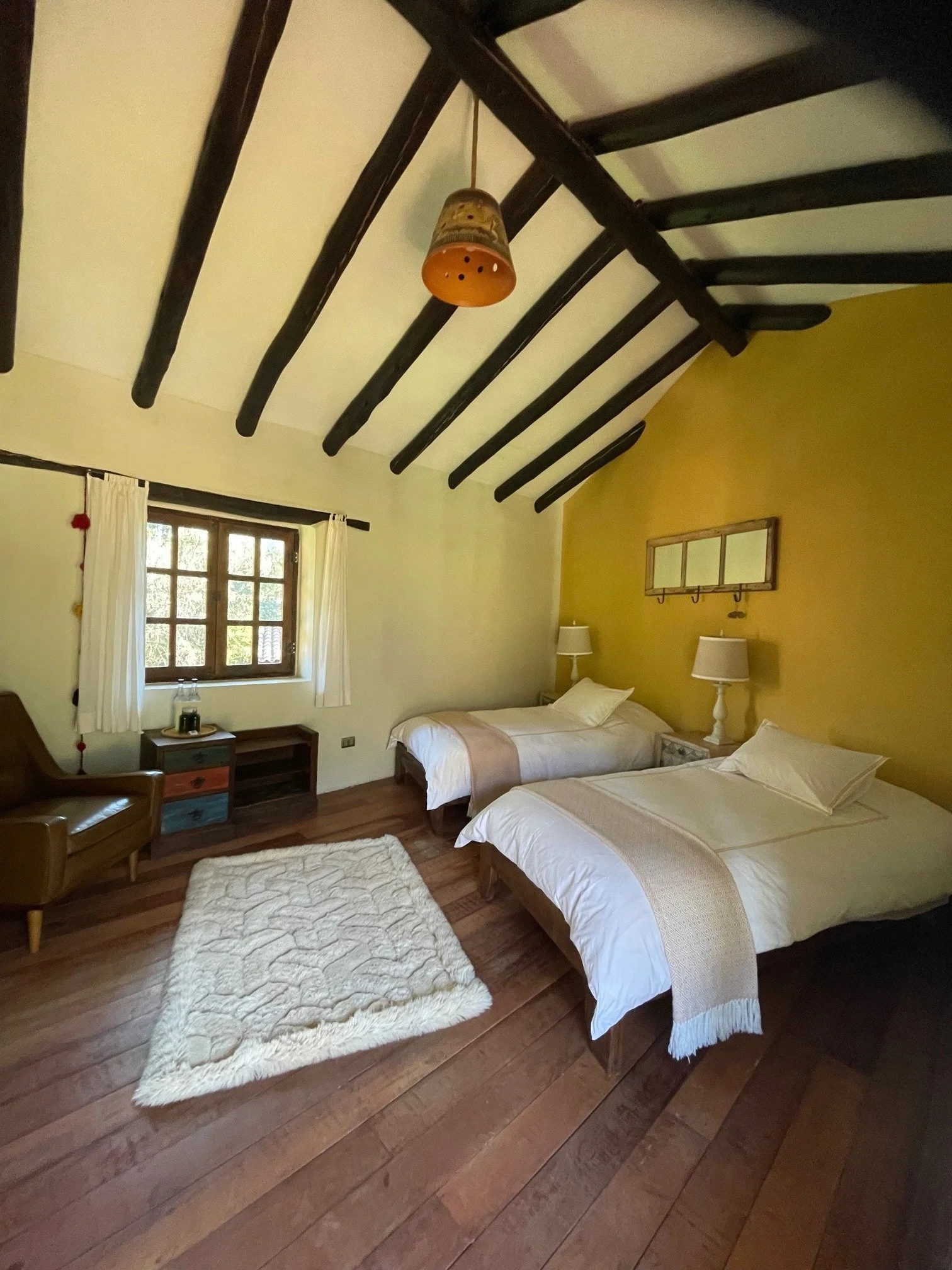From your room, your gaze rests upon one of the most sacred mountains of the Andes: Pitu Siray, the feminine Apu, guardian of the land and a quiet presence throughout your stay. Footpaths wind gently through the village, inviting slow walks and moments of reflection, while longer trails lead to the Arin waterfall - an offering of movement, water, and renewal.